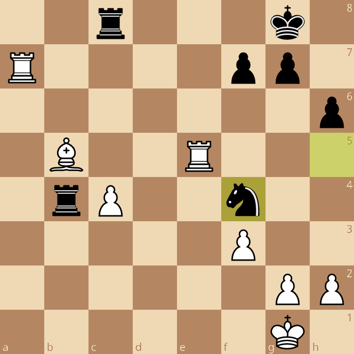 Au 3e échiquier, Lev joue une bonne partie avec les blancs. Dans le but de ne pas céder l’espace, il est contraint à de nombreux échanges. L’égalité est maintenue avec Dame, Tour et six pions de part et d’autre. Chacun vise les faiblesses structurelles de l’autre. Lev a eu le tort d’affaiblir son roque en jouant le pion g. Ne prenant garde à ce détail, il se fourvoie en pensant à un simple échange de plus. En réalité, il perd sa tour ! Lev tente ensuite une série d’échecs mais l’échec perpétuel est imaginaire. L’adversaire y croit et signe la nulle. Ouf !