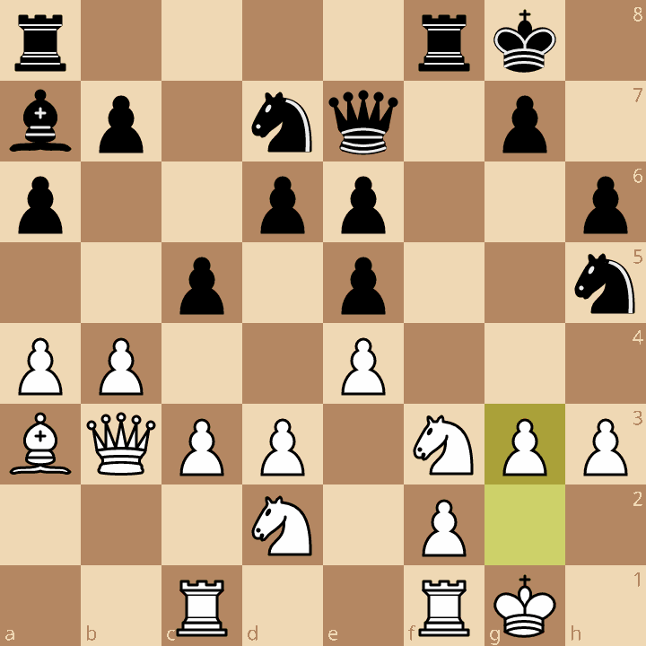 La première partie face à un joueur non classé est une formalité pour Lev. Il en est de même pour la deuxième. Les choses sérieuses commencent à la 3e ronde où Lev joue avec les blancs contre Lucas Thulliez (1747). Alors que la position est sensiblement égale, Lev affaiblit son rempart royal et c’est le début de la descente vers la défaite (diag).