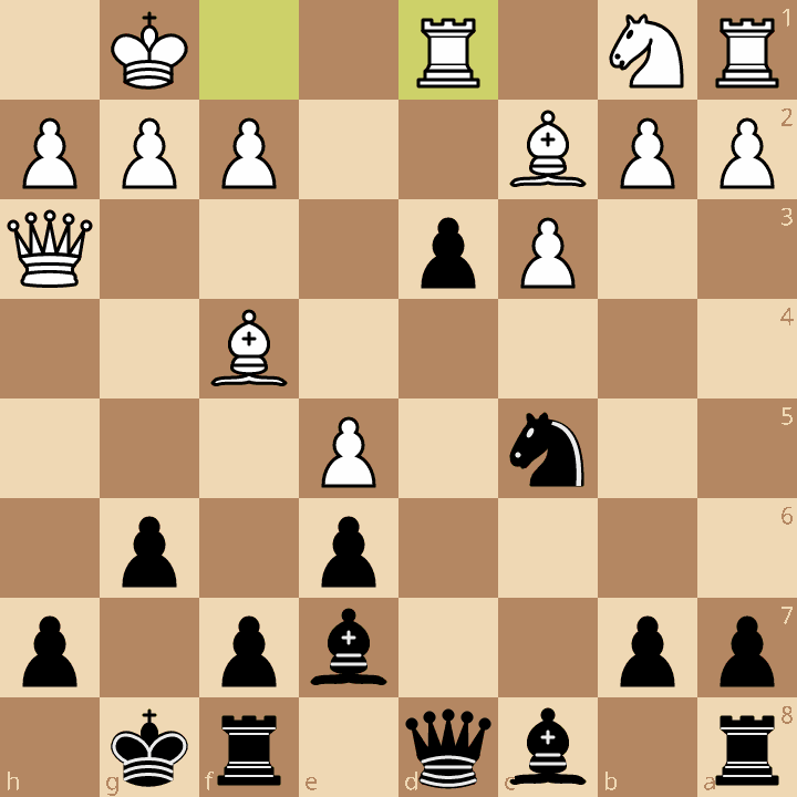 Les blancs ont joué 16.Td1? mais Daniel n’a pas joué la suite nettement profitable 16…dxc2 17.Txd8 cxb1=D+ 18.Txb1 Txd8-+